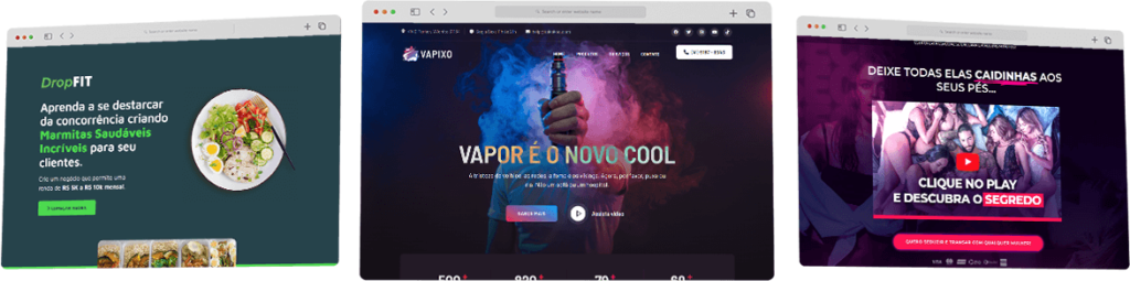 Dentro da Área de Membros estão disponíveis atualmente páginas dos seguintes nichos: Emagrecimento, Dinheiro e Criptomoedas, Beleza e Estética, Maquiagem, Relacionamento, Renda e Finanças, Educação, Artesanato, Saúde e Fitness, Pets, Comida, Culinária, Games, Encapsulados, Importação, Dropshipping.